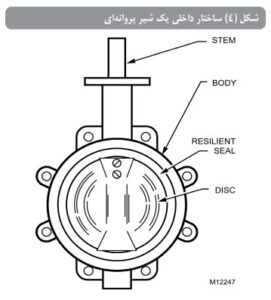 همانطور که در شکل4( مشاهده میشود، شیر کنترل های پروانه ای از یک بدنه استوانه ای شکل، یک محور و یک صفحه مدور تشکیل شده اند. باز و بسته شدن شیر کنترل های پروانه ای با دوران 90 درجه ای دیسک این شیر کنترل ها انجام میگیرد. نشیمن های دیسک که در مقابل الی ارتجاعی بدنه شیر کنترل قرار میگیرند معمولا به منظور محکم بستن شیر کنترل ساخته میشوند و یا برای کاهش گشتاور کارکرد شیر کنترل بدون محکم بستن در اندازه ای کوچکتر ساخته شوند. شیر کنترل های پروانه ای اساسا در کاربردهایی که استفاده از شیر کنترل های دو راهه الزامی است مورد استفاده قرار میگیرند. برای کاربردهایی که نیازمند استفاده از شیر کنترل های سه راهه هستیم، دو شیر کنترل پروانه ای با استفاده از یک بازوی متحرک به یک سه راهه لوله متصل میشود.