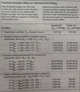 این محاسبه با داشتن دمایی دلخواه از هوای رفت و بار سرمایی محسوس که ترمینال یونیت باید برآورده سازد امکان پذیر خواهد بود.