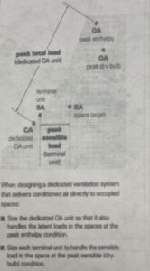 توجه : طراحی هایی که هوای مطبوع را با نسبت رطوبت و یا دمای نقطه شبنمی برابر با فضای هدف تحویل می دهند قادر به برآوردن بارهای نهان محلی نخواهند بود. در این گونه طراحی ها، انداز، واحد اختصاصی هوای بیرون شاید کوچک تر به دست آید اما ابعاد و ظرفیت ترمینال یونیت های مورد نیاز بزرگ تر می باشد که به بالا رفتن رطوبت نسبی در فضاهای داخلی خواهد انجامید.)