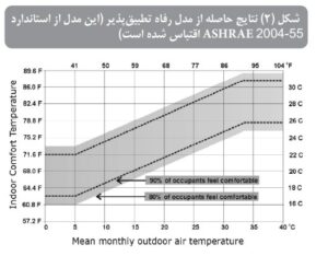 شکل (2) یک مدل تطبیق پذیر برای شــرایط رفاه انسانی را نمایش میدهد. در این شــکل دمای داخلی برای