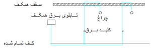 1.3متــر لولــه برق رســان بــه کلیــد از تابلــو و یــک خــط برق رسـان بـه کلیـد ح و دو خـط 1.7 متـر بـه سـقف جهـت روشنایی جمعا 6‌متر طول.