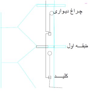 • کلیــد شــماره3 – یــک خــط 1.3 متــر بــه کلیــد راه پلــه از تابلــو و 1.7 متــر تــا اولیــن پاگــرد راه پلــه بحالــت عمــودی اجــرا میگــردد.