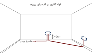بایســتی لولــه 1.3 متــر از کــف تــا کلیــد ارتفــاع بگیــرد. بنابرایــن یعنــی لولــه عمــودی تــا کلیــد و 1.7 متــر لولــه تــا بــالای ســقف جهــت چــراغ جمعا 3 متــر لازم اســت.