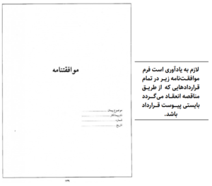 ب) موافقت‌نامــه موادیســت کــه پیوســت قــرارداد بــوده و نمونــه در انتهــای همیــن مطلــب همــان موافقت‌نامــه اســت.