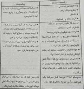 - وضعیت کنونی سیستم HVAC را مورد توجه قرار دهید.